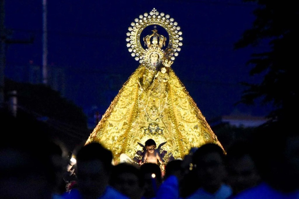 In l954, in a boat shaped carriage, La Naval was led in solemn procession by the Phillippines hierarchy, public officials, priests, nuns, and thousands of devotees to her new home. This shirne was declared by the Philippine bishops as the national shrine of the Queen of the Holy Rosary of the Philippines.