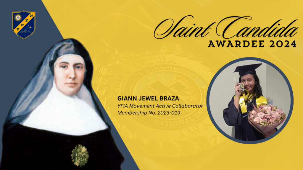 The Young Faith in Action (YFIA) Movement would like to congratulate our active collaborator from the Philippines on being named the Saint Candida Awardee 2024 of Nazareth School of National University (NSNU), Batch 2024.