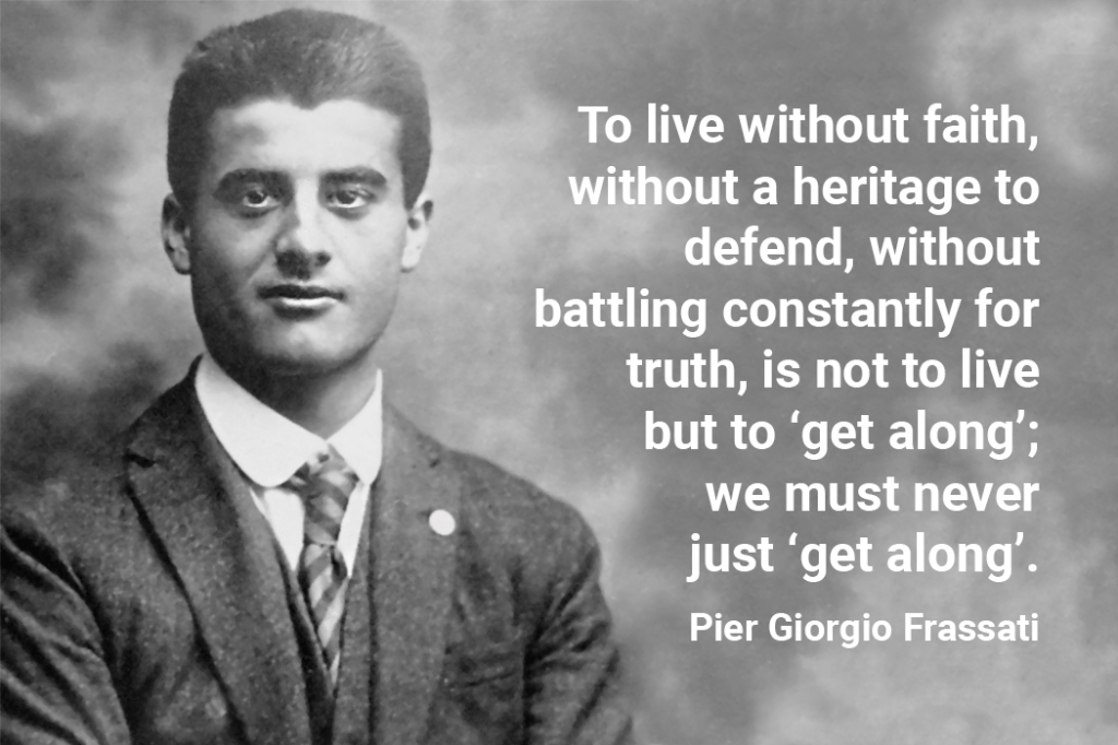 Frassati members commit to imitating the life of Blessed Pier Giorgio Frassati. Taking to heart his words, “The higher we go, the better we shall hear the voice of Christ,” our ministry encourages prayer, study, and lively engagement with others and with the Church. Through this, we find and become the light of Christ.